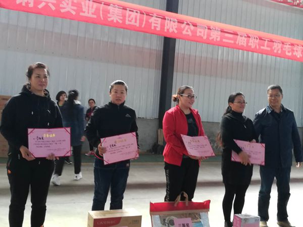 公司領(lǐng)導(dǎo)王林峰為女子單打第1名:李振宏(匯興)第二名:李惠敏(新星)第三名:馬羽(瑞豐)第四名:李孟芝(機(jī)關(guān))頒獎(jiǎng)